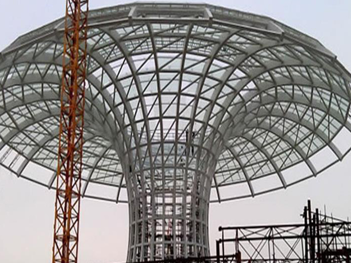 二、球形网架结构因其结构新颖,受力合理,自重轻、用钢量低等优点。如大型体育场馆球形莆田螺栓球网架、公共场馆球形网架、电厂莆田螺栓球网架、水泥工业球形网架、仓储物流球形网架、莆田干煤棚工业球形网架、莆田收费站莆田加油站球形网架、展览中心、影剧院、商场、航站楼、候车厅、工厂莆田车间、仓库、电视塔等球形螺栓球节点网架。国内球形网架结构主要分为:莆田焊接球节点网架及螺栓球节点网架两种。螺栓球节点网架其构件工厂内加工量较大,现场安装便捷,适用于现场工期紧,莆田施工条件、用电量受制约,网架形状复杂、莆田杆件定位困难的异形结构。螺栓球节点球形网架系统基本由莆田杆件、螺栓球、支撑支座等组成。按照节点形式可分为交叉莆田桁架体系、四角锥体系、三角锥体系等。支撑方式多为固定支座支撑。对于大面积、大跨度及有特殊受力或伸缩要求的网架结构可采用橡胶支座、滑移支座、球铰支座等支撑形式,以满足结构自身的受力稳定、均衡,便于内力释放等设计要求。